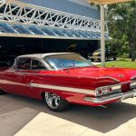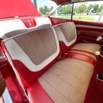 Stepping inside, the interior of this vintage Impala is just as captivating as its exterior. The red and white color scheme continues into the cabin, creating an atmosphere of opulence and sophistication. The seats are upholstered in plush, luxurious materials that provide both comfort and support, making every journey a pleasurable experience. The attention to detail in the interior design is evident, with chrome accents adorning the dashboard and door panels, adding a touch of class and refinement.